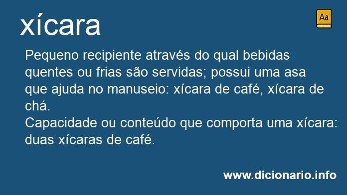 Etimologia (origem da palavra xícara). Do espanhol jícara.