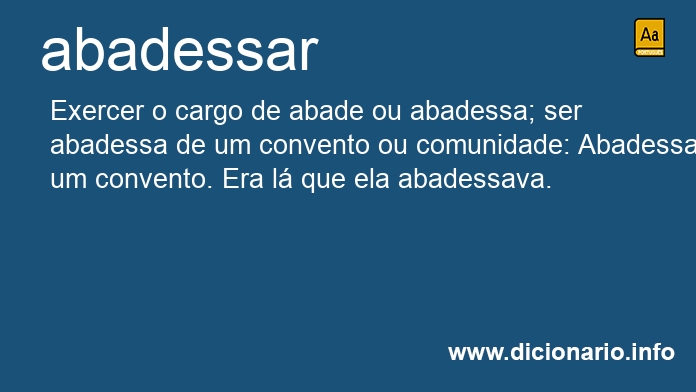 Exercer o cargo de abade ou abadessa; ser abadessa de um convento ou comunidade: Abadessar um convento. Era lá que ela abadessava.