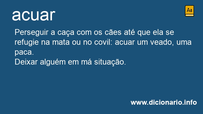 Acuarás vem do verbo acuar. O mesmo que: acossarás, caçarás, perseguirás.