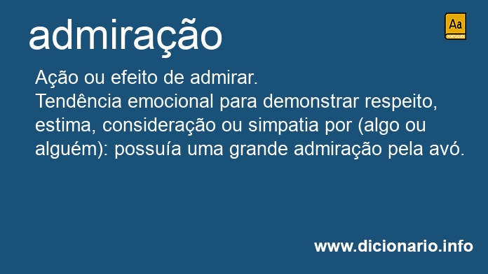 Tendência emocional para demonstrar respeito, estima, consideração ou simpatia por (algo ou alguém): possuía uma grande admiração pela avó.