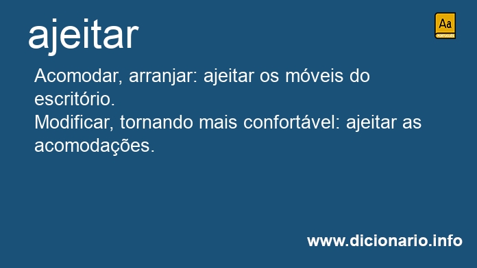 Acomodar, arranjar: ajeitar os móveis do escritório.
