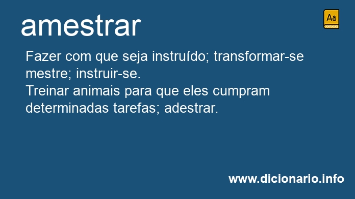 Amestre vem do verbo amestrar. O mesmo que: eduque, adestre, leccione, instrua, ensine, doutrine, pontifique, explique, forme.