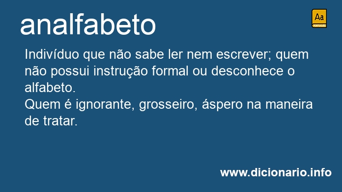 substantivo masculino Indivíduo que não sabe ler nem escrever; quem não possui instrução formal ou desconhece o alfabeto.