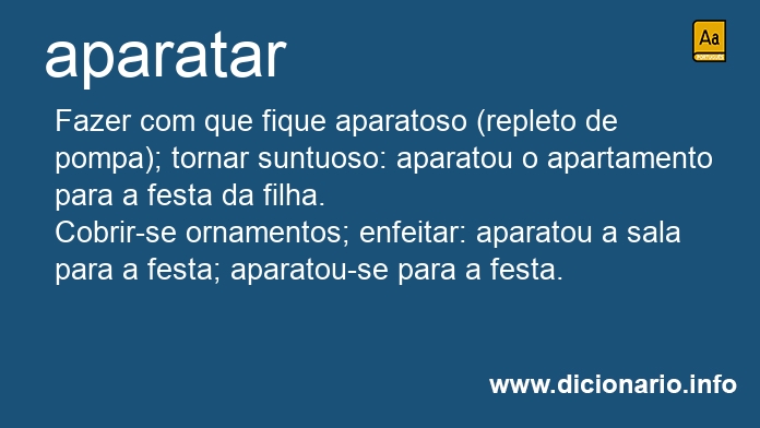 Cobrir-se ornamentos; enfeitar: aparatou a sala para a festa; aparatou-se para a festa.