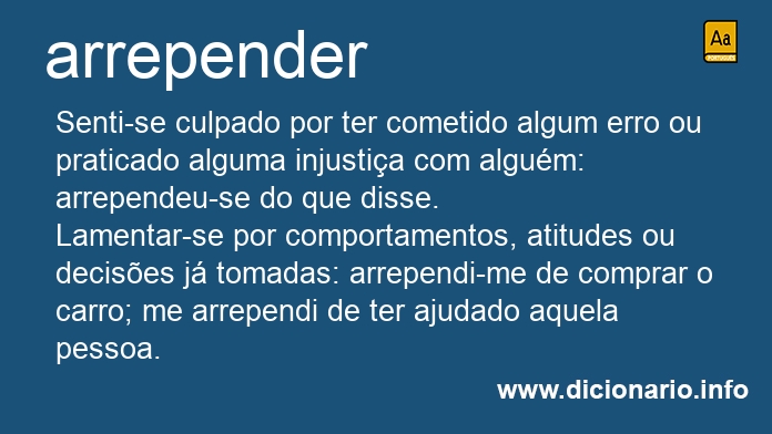 Lamentar-se por comportamentos, atitudes ou decisões já tomadas: arrependi-me de comprar o carro; me arrependi de ter ajudado aquela pessoa.