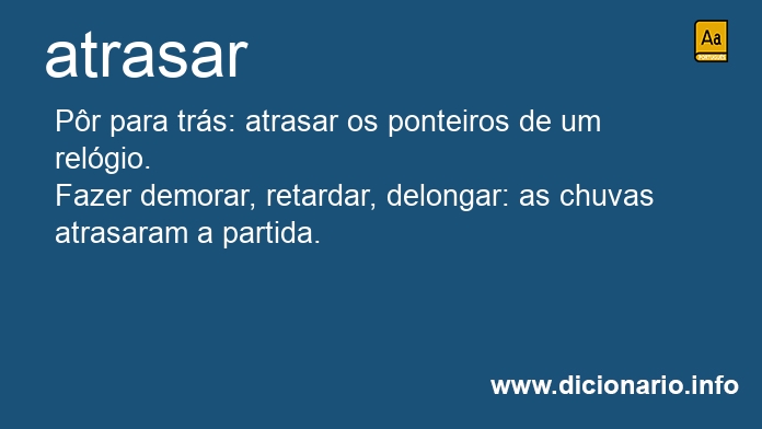 Fazer demorar, retardar, delongar: as chuvas atrasaram a partida.