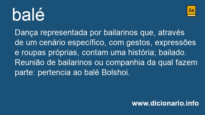 Etimologia (origem da palavra balé). Do francês ballet; pelo italiano balleto.