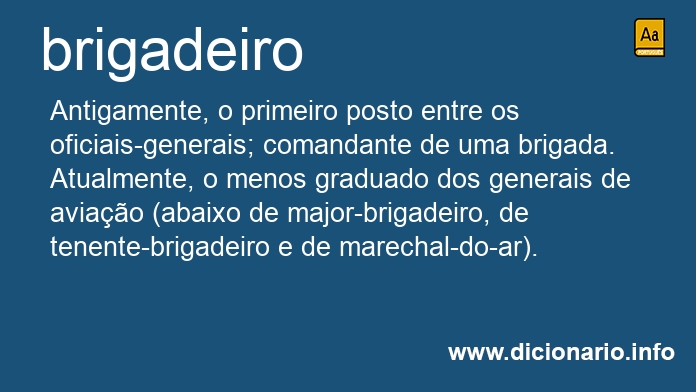 substantivo masculino Antigamente, o primeiro posto entre os oficiais-generais; comandante de uma brigada.