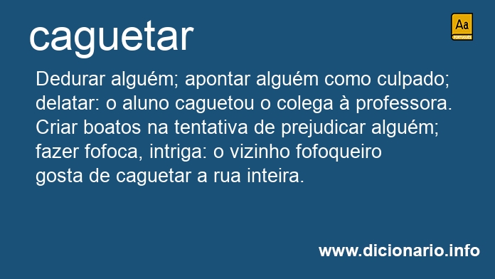 Etimologia (origem da palavra caguetar). Forma Der. de alcaguetar.