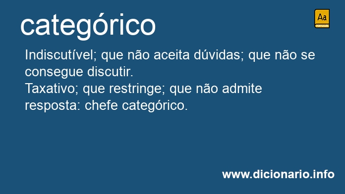 Categórico é sinônimo de: peremptório, decisivo, definitivo, formal, terminante, indiscutível, taxativo