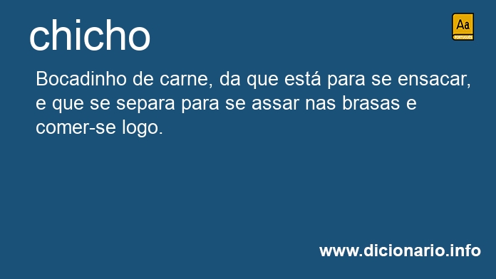 substantivo masculino [Portugal] Bocadinho de carne, da que está para se ensacar, e que se separa para se assar nas brasas e comer-se logo.