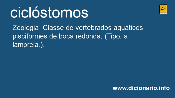 substantivo masculino plural Zoologia Classe de vertebrados aquáticos pisciformes de boca redonda. (Tipo: a lampreia.).