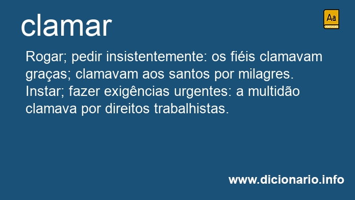 Rogar; pedir insistentemente: os fiéis clamavam graças; clamavam aos santos por milagres.