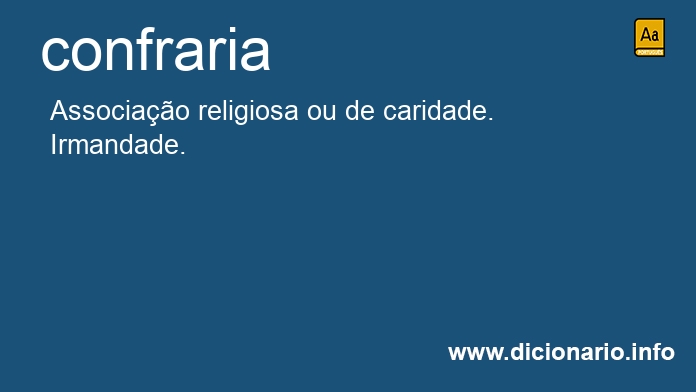 Confrarias é o plural de confraria. O mesmo que: comunhãos, comunhões, comunidades, congregações, irmandades, sociedades.