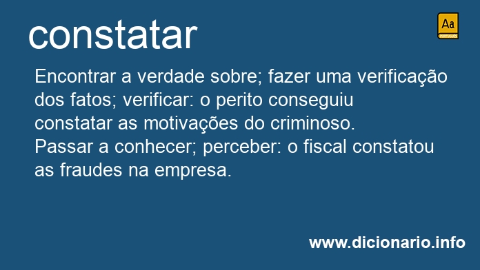 Passar a conhecer; perceber: o fiscal constatou as fraudes na empresa.