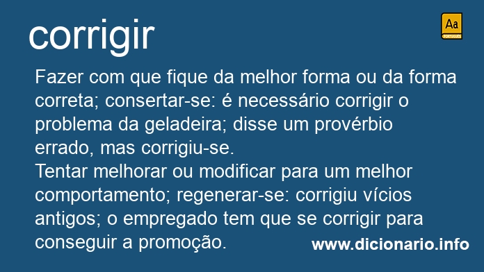 Tentar melhorar ou modificar para um melhor comportamento; regenerar-se: corrigiu vícios antigos; o empregado tem que se corrigir para conseguir a promoção.