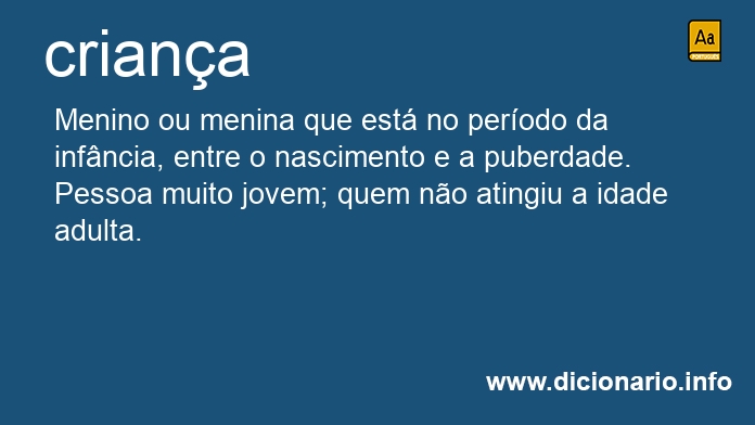 Menino ou menina que está no período da infância, entre o nascimento e a puberdade.