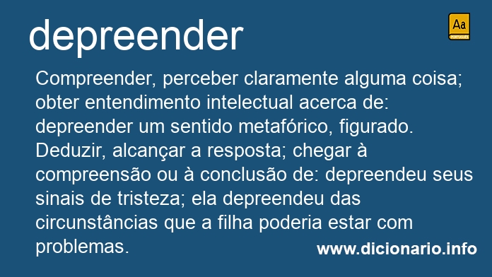 Compreender, perceber claramente alguma coisa; obter entendimento intelectual acerca de: depreender um sentido metafórico, figurado.