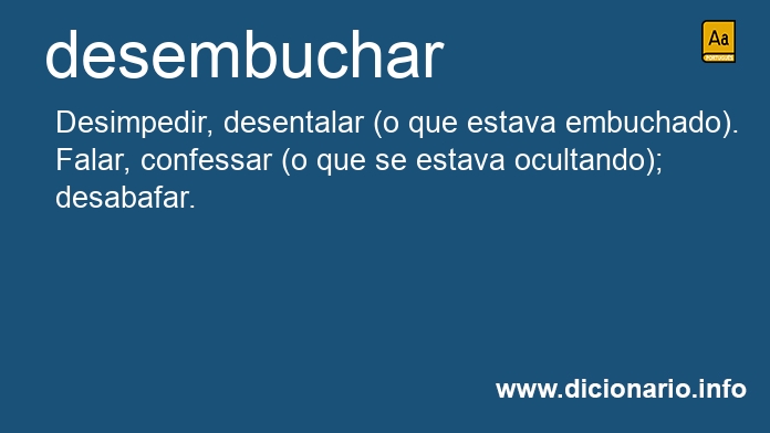 Desembuchado vem do verbo desembuchar. O mesmo que: desimpedido, descoberto, declarado, falado, desabafado, confessado, explicado, desentalado.