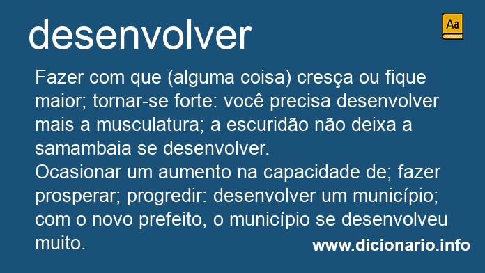 Aumentar o conhecimento intelectual; ampliar os valores morais e/ou espirituais: a criança desenvolveu a criatividade; a criatividade se desenvolveu rapidamente.