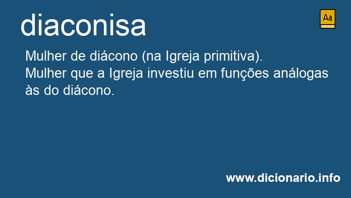 substantivo feminino Mulher de diácono (na Igreja primitiva).