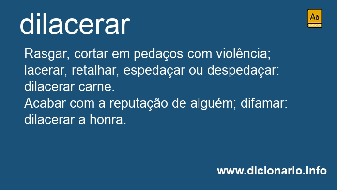 Rasgar, cortar em pedaços com violência; lacerar, retalhar, espedaçar ou despedaçar: dilacerar carne.