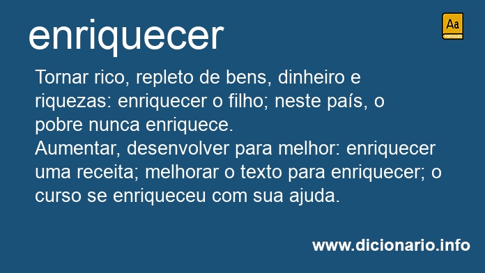 [Por Extensão] Aumentar, desenvolver para melhor: enriquecer uma receita; melhorar o texto para enriquecer; o curso se enriqueceu com sua ajuda.