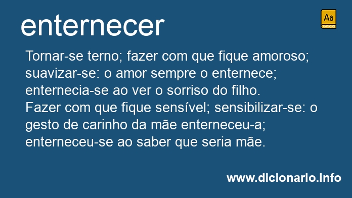 Fazer com que fique sensível; sensibilizar-se: o gesto de carinho da mãe enterneceu-a; enterneceu-se ao saber que seria mãe.