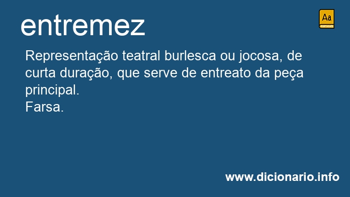 substantivo masculino Representação teatral burlesca ou jocosa, de curta duração, que serve de entreato da peça principal.