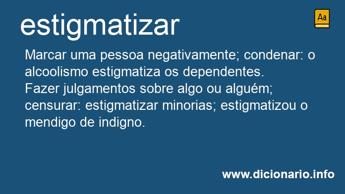 [Figurado] Fazer julgamentos sobre algo ou alguém; censurar: estigmatizar minorias; estigmatizou o mendigo de indigno.