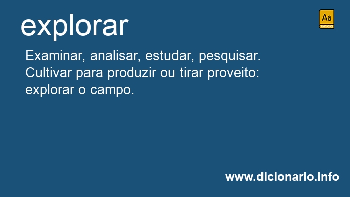 Explore vem do verbo explorar. O mesmo que: analise, estude, investigue, averigue, examine, indague.