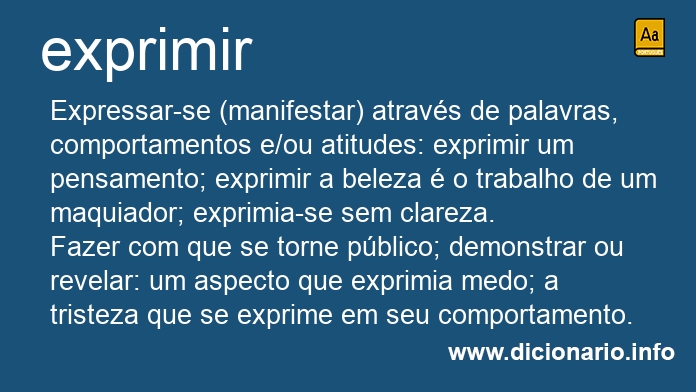 Expressar-se (manifestar) através de palavras, comportamentos e/ou atitudes: exprimir um pensamento; exprimir a beleza é o trabalho de um maquiador; exprimia-se sem clareza.