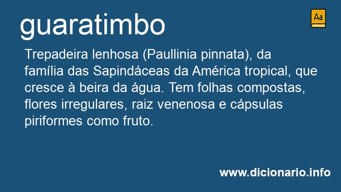 substantivo masculino [Botânica] Trepadeira lenhosa (Paullinia pinnata), da família das Sapindáceas da América tropical, que cresce à beira da água. Tem folhas compostas, flores irregulares, raiz venenosa e cápsulas piriformes como fruto.