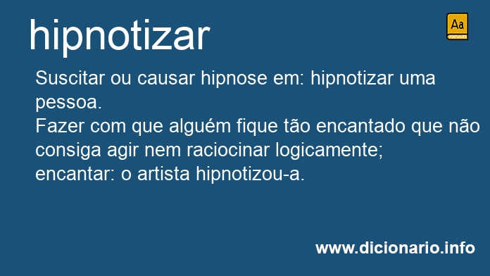 [Figurado] Fazer com que alguém fique tão encantado que não consiga agir nem raciocinar logicamente; encantar: o artista hipnotizou-a.