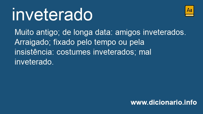 Arraigado; fixado pelo tempo ou pela insistência: costumes inveterados; mal inveterado.