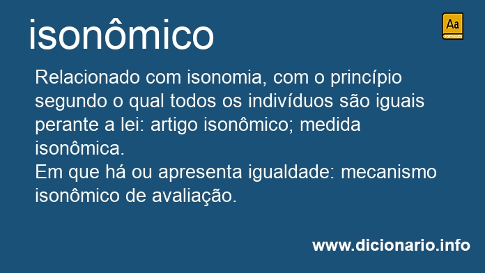 Relacionado com isonomia, com o princípio segundo o qual todos os indivíduos são iguais perante a lei: artigo isonômico; medida isonômica.