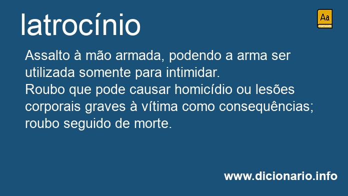 Etimologia (origem da palavra latrocínio). Do latim latricinium.ii.