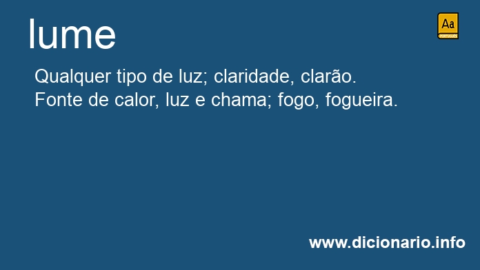 Lume é sinônimo de: fogo, fogueira, calor, claridade, luz, clarão, vela, círio, perspicácia, inteligencia