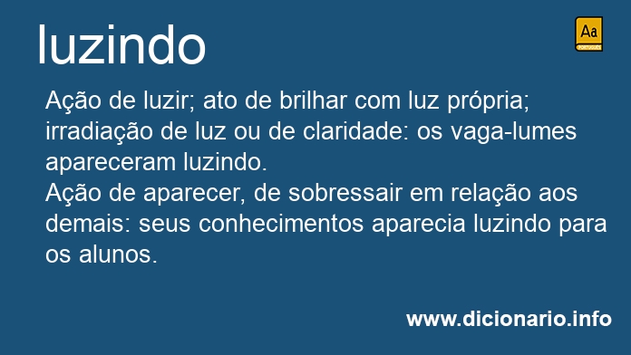 Etimologia (origem da palavra luzindo). Forma Der. de luzir.