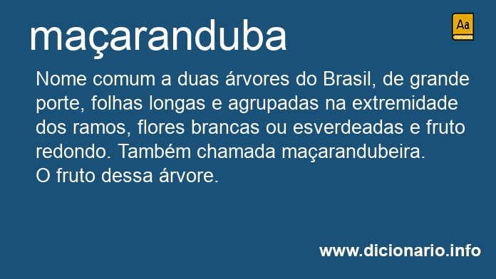 [Brasil] Nome comum a duas árvores do Brasil, de grande porte, folhas longas e agrupadas na extremidade dos ramos, flores brancas ou esverdeadas e fruto redondo. Também chamada maçarandubeira.