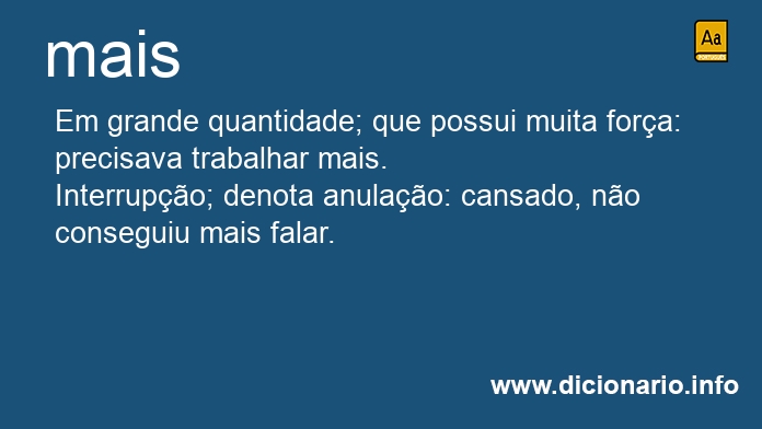 advérbio Em grande quantidade; que possui muita força: precisava trabalhar mais.