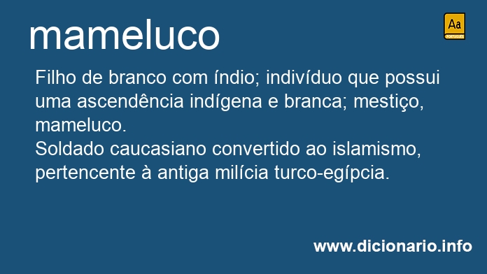 Etimologia (origem da palavra mameluco). Do árabe mamluk.
