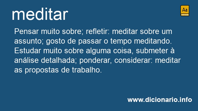 Pensar muito sobre; refletir: meditar sobre um assunto; gosto de passar o tempo meditando.