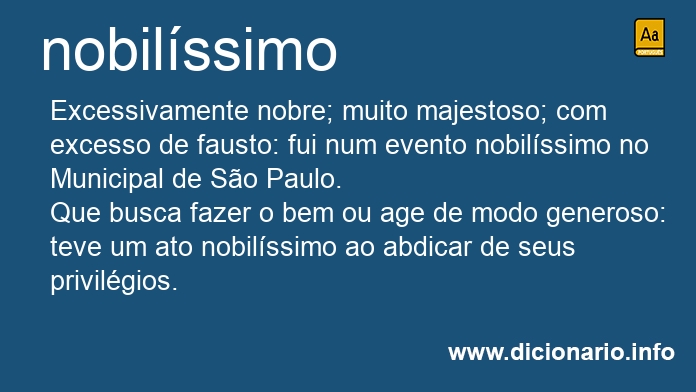 adjetivo Excessivamente nobre; muito majestoso; com excesso de fausto: fui num evento nobilíssimo no Municipal de São Paulo.