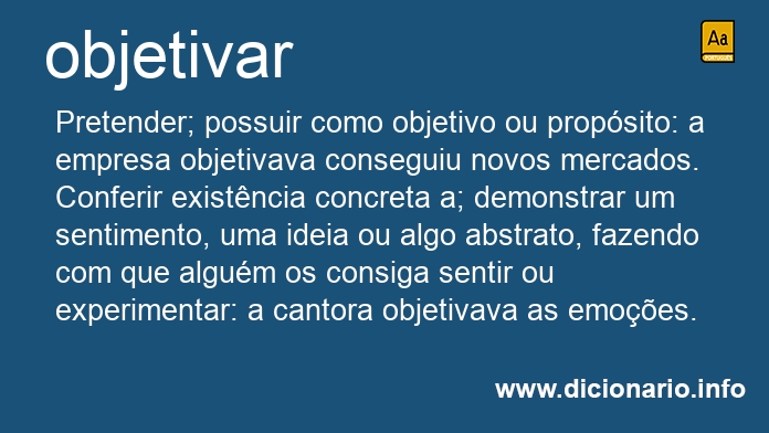 Etimologia (origem da palavra objetivar). Objetivo + ar.