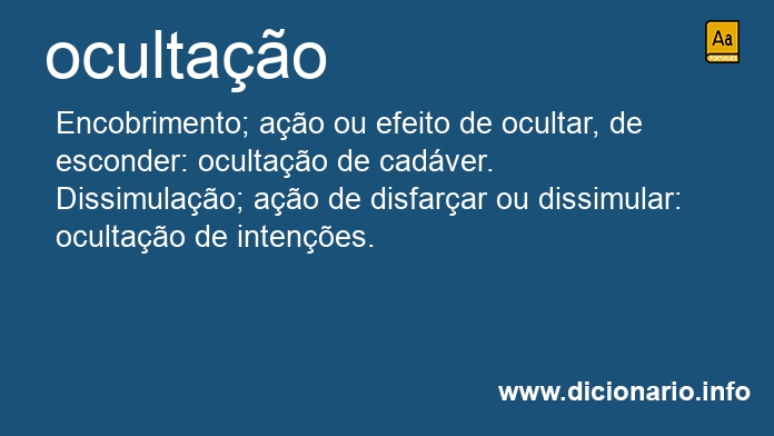 Ocultação é sinônimo de: disfarce, dissimulação, encobrimento