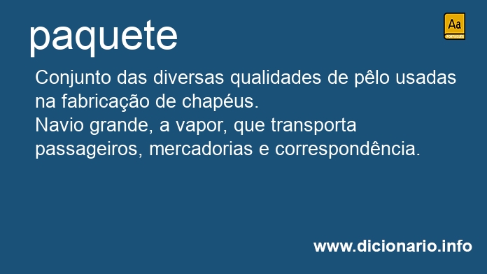 Etimologia (origem da palavra paquete). Do inglês packet.