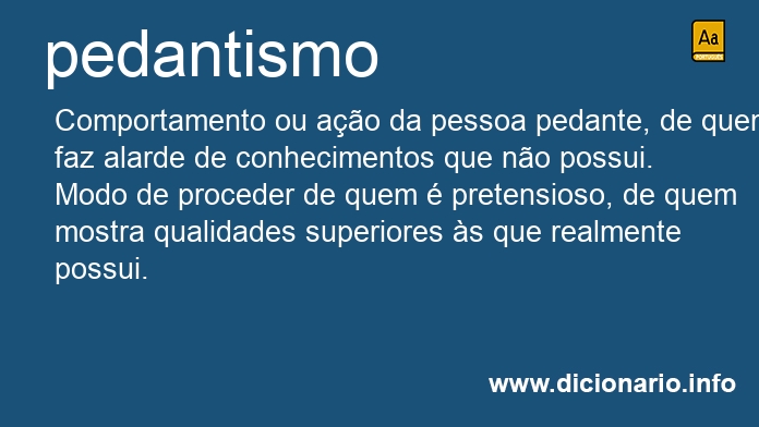 substantivo masculino Comportamento ou ação da pessoa pedante, de quem faz alarde de conhecimentos que não possui.
