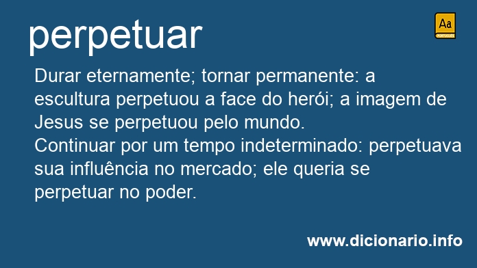 Continuar por um tempo indeterminado: perpetuava sua influência no mercado; ele queria se perpetuar no poder.