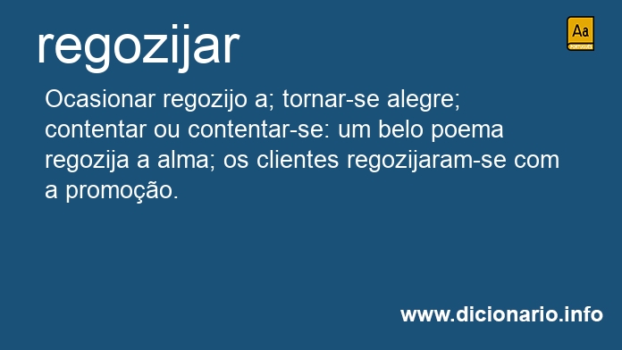 Ocasionar regozijo a; tornar-se alegre; contentar ou contentar-se: um belo poema regozija a alma; os clientes regozijaram-se com a promoção.